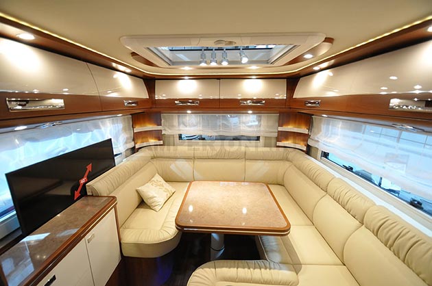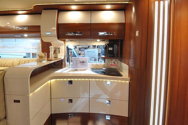 Carthago Liner For Two 53, è lungo quasi otto metri, è allestito su meccanica Fiat Ducato con telaio AL-KO AMC e si presenta come una vera e proprio “suite” dedicata alla coppia super esigente, grazie alla sua particolare pianta interna che prevede, in coda, una sontuosa dinette a “G” pensata per ospitare fino a 8 persone, diventando così il vero cuore dell’allestimento.