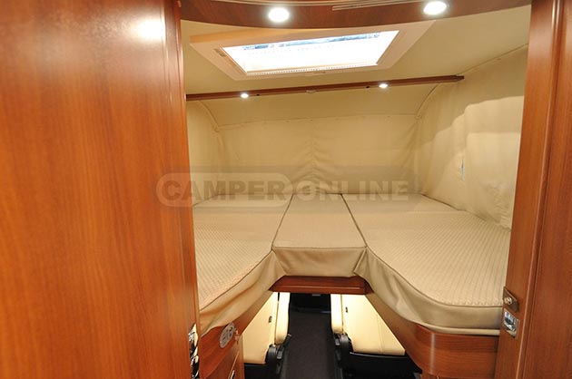 Un vero e proprio salotto di dimensioni e conformazione domestica, quindi, così come di ispirazione domestica sono sia la cucina si i servizi con locale wc e doccia indipendenti. E per la notte, ecco due ampi letti gemelli basculanti elettricamente il cui accesso è facilitato da un comodo doppio gradino.