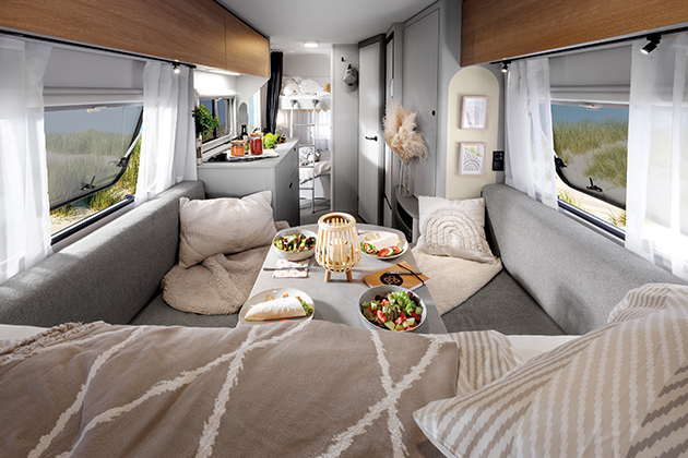 Sassino. Queste caravan presentano alcune modifiche esterne ma soprattutto un inedito design all'interno, pulito e lineare. La serie