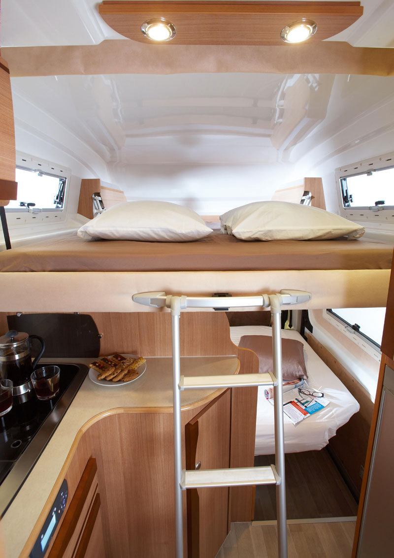 Di ottimo livello l'impiantistica, con doppio pavimento posteriore, riscaldamento Truma Combi Diesel per la massima autonomia, frigorifero da 100 litri, serbatoio dell'acqua e del recupero in posizione antigelo (coibentati e riscaldati) e quattro posti letto grazie al pratico basculante anteriore.