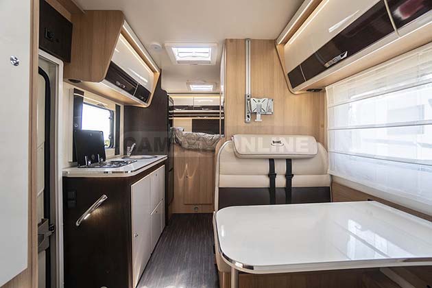 McLouis. La scocca è infatti completamente priva di legno: pareti e tetto hanno un rivestimento interno ed esterno in vetroresina e isolamento PS waterproof. La salita a bordo dell’abitacolo è resa più agevole dall’adozione di una porta cellula XL, dotata di zanzariera, con larghezza maggiorata pari a 60 cm e gradino integrato di forma rettangolare dalla pedana più profonda.
