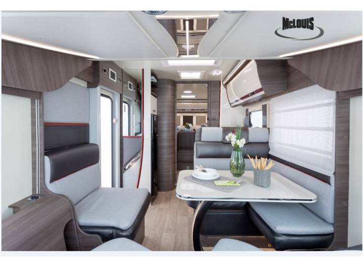 MC4 34 Diamond: semintegrale con lunghezza inferiore ai 6,5 metri, letto posteriore centrale e bagno a volume variabile. Completano l’allestimento di questo modello una cucina lineare ed una semidinette a “L”.