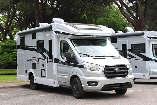 Per la meccanica è stato scelto lo chassis Ford Transit, con il motore 2.0 TDI da 130 Cv proposto come base di partenza e la più potente versione da 165 Cv in opzione. La rinnovata meccanica Ford si porta in dote numerosi accessori, soprattutto dedicati all’assistenza alla guida e alla sicurezza di marcia. Ma anche per il resto dell’allestimento la dotazione di serie è piuttosto ricca, lo vediamo già dall’esterno con le fiancate colorate in grigio (a richiesta anche la cabina). Il modello più grande è l’Mc4 339 Slim da 669 cm di lunghezza, che garantisce uno spazio interno che possiamo definire abbondante per un semintegrale compatto. Elementi caratteristici sono i letti gemelli posteriori, la dinette a L anteriore e il bagno con parete rotante per realizzare il vano doccia.