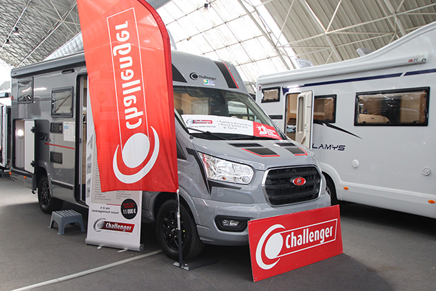 Camping Sport Magenta. Al centro del suo stand erano esposti tre modelli appartenenti a particolari tipologie di camper oggi decisamente sotto i riflettori: a rappresentare il van a trazione integrale c'era l'Hymer Grand Canyon S 4x4 e come interessante campione di mini-van a tetto sollevabile spiccava il Crosscamp Flex, mentre il Challenger S 217 Sport Edition era un valido esempio di semintegrale compatto. Ovviamente non mancavano modelli più classici, marchiati McLouis, Mobilvetta e Benimar.