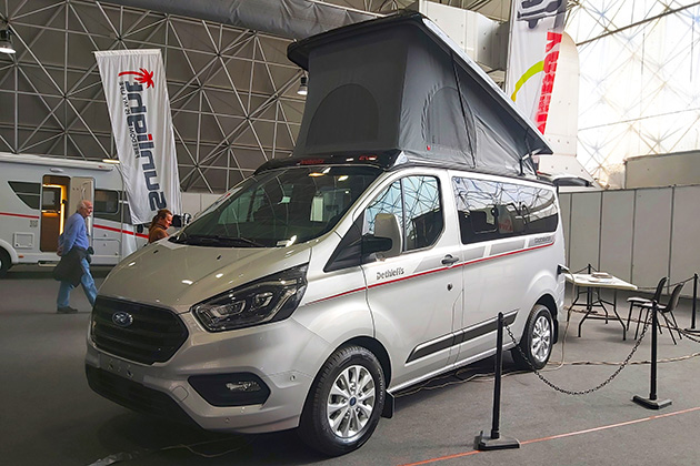 Evo Camper: il concessionario di Novi Ligure ha portato in fiera il Globevan, nuovo minivan a tetto basso sollevabile proposto da Dethleffs, ma ha presentato anche un saggio della produzione Autostar (motorhome e van) e altri modelli marchiati Sunlight.