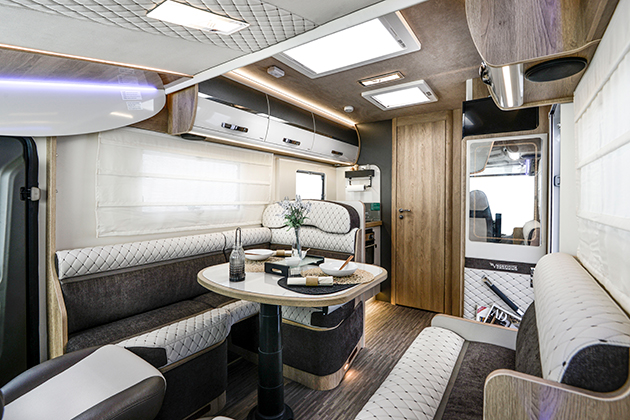 Gli interni sono caratterizzati dalla toilette ampia sulla parte posteriore del camper e di una zona living molto vivibile grazie ad una grande dinette e alla cucina lineare.
