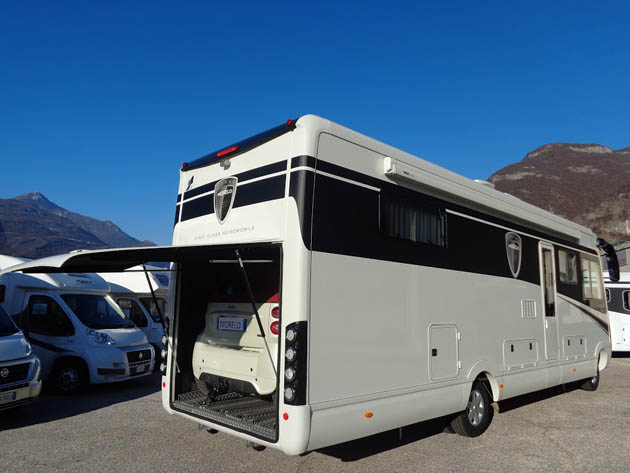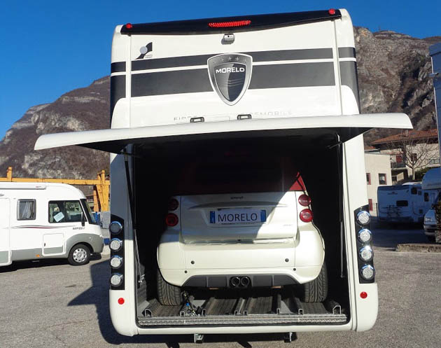 Il secondo veicolo a essere esposto sarà il più grande Morelo Palace Style 90 GBX, anch’esso su telaio Iveco Daily con cambio automatico a otto rapporti, dotato anche di garage capace di contenere una Smart.