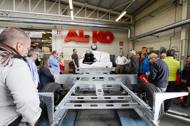 AL-KO a Castel D’Azzano, dove vengono assemblati i telai ribassati AL-KO AMC per ii costruttori italiani e sloveni. Qui Alessandro Marco Butturini, direttore commerciale di AL-KO Italia, ha illustrato ai partecipanti tutte le fasi di assemblaggio del celebre telaio che equipaggia, naturalmente, anche i prestigiosi motorhome Niesmann+Bischoff della gamma Arto.