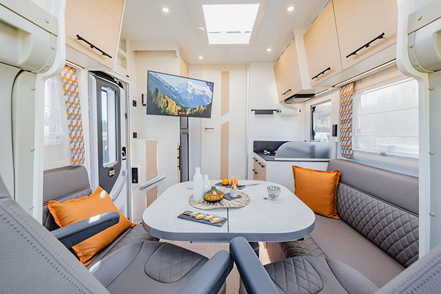 Notin Lerida è un camper integrale dal layout inedito con letti gemelli e dinette face to face, perfetto per chi cerca spazi ottimizzati e convivialità.