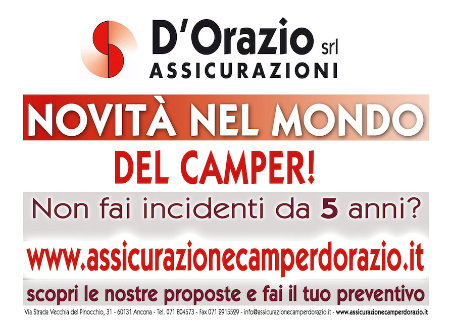 "La nuova Polizza - dice Cristiano D'Orazio - non intende sostituire la nostra polizza storica, già difficilmente eguagliabile nel rapporto qualità/prezzo, ma vuole offrire un'ulteriore opportunità di risparmio ed un'alternativa studiata ad hoc per coloro che hanno richieste diverse in termini di garanzie accessorie. In questo modo abbiamo coperto le esigenze di tutti i camperisti i quali, contattando la nostra Agenzia, avranno la possibilità di essere indirizzati verso un prodotto assicurativo cucito su misura."