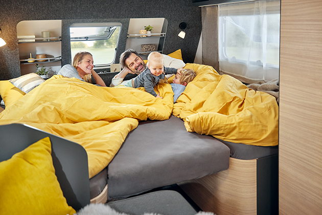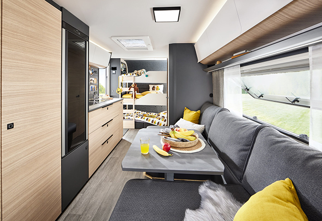 “Questa roulotte può essere utilizzata dalle famiglie per tutta la vita: dal primo al terzo figlio, quando si aggiunge un amico in vacanza o quando qualche bambino resta a casa ma il cane di famiglia si unisce all'equipaggio. E anche senza i letti a castello, l'area può essere utilizzata come spazio di stoccaggio flessibile. Stiamo lavorando su componenti aggiuntivi per questo obiettivo, per esempio i sistemi di scaffalature che, come tutti i nostri accessori, possono essere facilmente montati a parete".