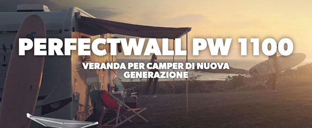 Le verande Dometic PerfectWall PW 1100 sono dotate di nuove funzioni brevettate per una maggior praticità: le gambe di supporto, estraibili da entrambi i lati del nuovo cassonetto, rendono l’installazione facile ed ergonomica. Il sistema Easy Lock Flipper blocca le gambe di supporto saldamente in posizione per evitare cadute accidentali. Il puntone di tensionamento, che estende perfettamente il tessuto, può essere riposto nel cassonetto dopo l’uso.