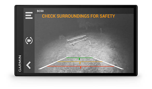 Funziona perfettamente con altri prodotti Garmin, tra cui le retrocamere wireless a lungo raggio della serie BC™ 50, che aiutano a vedere dietro il veicolo e la centralina digitale Garmin PowerSwitch™ per controllare comodamente l'elettronica a 12 volt del camper.
