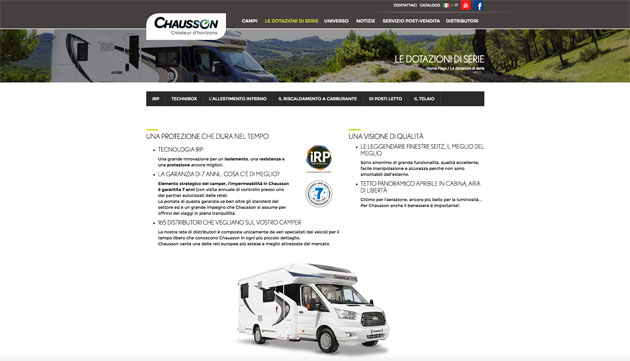Chausson è stato quello di rinnovare il proprio sito Web rafforzando i punti forti già presenti sulla precedente release ma rinnovandosi nel look e, soprattutto, nella facilità di consultazione attraverso ogni strumento tecnologico odierno (smartphone, tablet o PC).