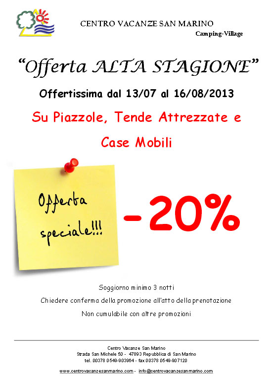 Per maggiori informazioni www.centrovacanzesanmarino.com