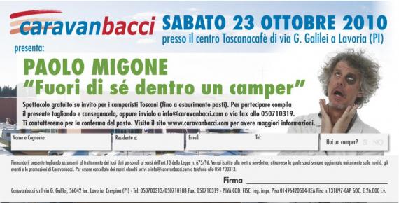ToscanaCafé invita i camperisti toscani allo spettacolo di Paolo Migone "Fuori di sè dentro un camper".