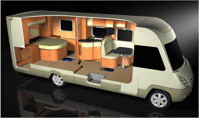 Questa soluzione è già offerta ai clienti Pilote fin dalla stagione in corso. Sui veicoli Explorateur 2011 saranno aggiunti accorgimenti tecnici per una ottimizzazione ancora più efficace del sistema di riscaldamento in risposta alle diverse tipologie di pianta: matrimoniale centrale (qui in rendering), matrimoniale a penisola con garage (esclusiva Pilote) leggi gemelli sovrastanti un capiente garage e pianta tradizionale con garage ad altezza variabile con meccanismo elettrificato.