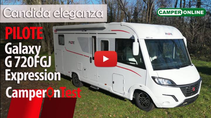 Galaxy G 720 FGJ Expression è un motorhome che si fa notare per un valido equilibrio tra dimensioni esterne e comfort interno. Per affrontare serenamente il freddo invernale c’è il doppio pavimento tecnico, ma dobbiamo considerare anche vari elementi dell’impiantistica. Grazie al Pacchetto Freedom, proposto ad un prezzo invitante, si ottiene un insieme di accessori che elevano di molto la dotazione base. Ma il Pilote Galaxy G 720 FGJ Expression si fa notare anche per l’ottimo design dell’arredo, moderno ed elegante: pochi elementi, pochi colori, ben armonizzati tra loro, un interno certamente di gran classe. E lo schema abitativo è pensato per offrire ospitalità a quattro persone, con letti gemelli, bagno con doccia indipendente e dinette face-to-face.