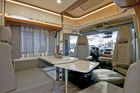 L’esterno del veicolo è in stile decisamente automotive, con la coda che si ispira prepotentemente al look della caravan ammiraglia Premium, la linea del tetto piacevolmente incurvata e le ampie finestrature laterali, mentre l’interno offre due varianti di legno per il mobilio e diverse possibilità di personalizzazione dei tessuti.