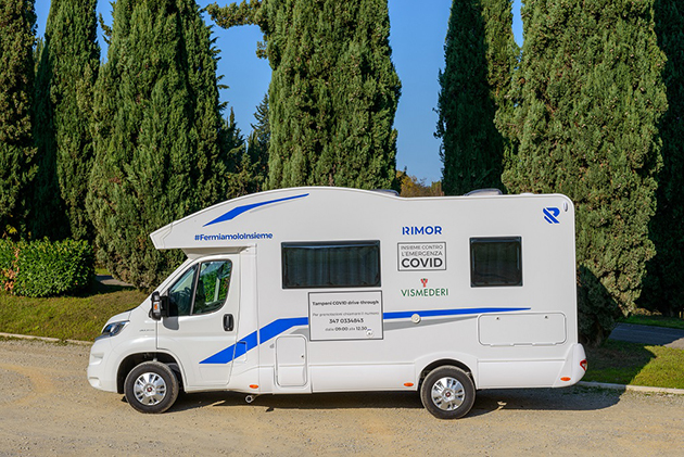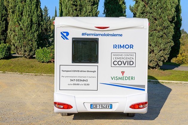 Rimor ha voluto supportare l‘attività diagnostica svolta da VisMederi mettendo a disposizione un camper specialmente allestito per la somministrazione di tamponi rinofaringei per la ricerca di coronavirus, in modalità drive-through. L’obiettivo è quello di adattare il servizio alle esigenze del territorio in maniera flessibile, permettendo al personale medico di svolgere la propria attività con il supporto di un laboratorio itinerante.