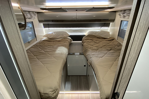 Zefiro 287 Integral adotta due letti singoli gemelli con armadi sottostanti, mentre lo