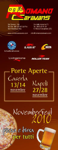 Romano Caravans, concessionario Laika e RollerTeam, invita amici, curiosi e clienti vecchi e nuovi all'edizione 2010 dell'ormai tradizionale "November Fest... Pizza e birra".