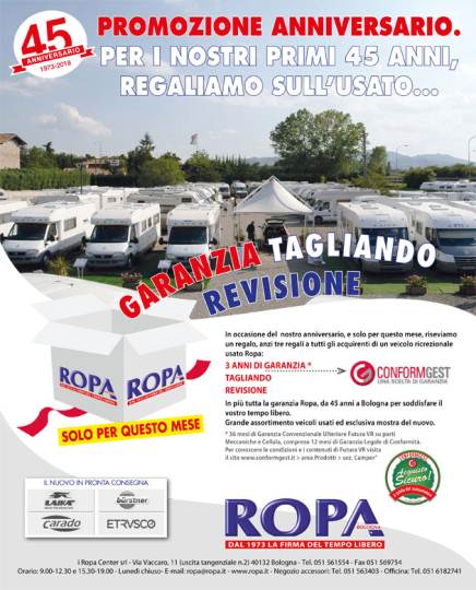 In occasione dei suoi primi 45 anni, Ropa ha deciso di offrire a chi si avvicina a un veicolo d’occasione, fino al 30 aprile, una serie di offerte particolarmente allettanti.