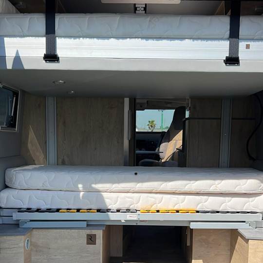 Tra le soluzioni degne di nota segnaliamo i letti basculanti posteriori che permettono di variare la conformazione del vano di carico, ma osserviamo anche un elevato grado di finitura dei pannelli porta, l’utilizzo di laminati anti graffio, l’impiego di zanzariere a tutta altezza per il portellone di coda e molto altro ancora.