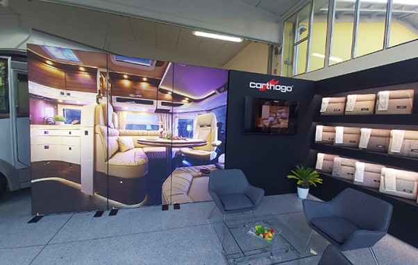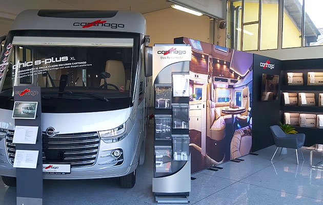 Carthago e di avere dettagliate informazioni in merito, ma è previsto anche un piacevole rinfresco “alla tedesca”, con i tradizionali brezel e l’immancabile birra. Vale la pena notare che la grande area espositiva di San Rocco è stata oggetto di un recente riassetto, per ricavare un “angolo Carthago” formato da un salotto accogliente, uno schermo con le informazioni più varie e una parete espositiva che mostra le diverse tappezzerie possibili per personalizzare l’interno dei veicoli.