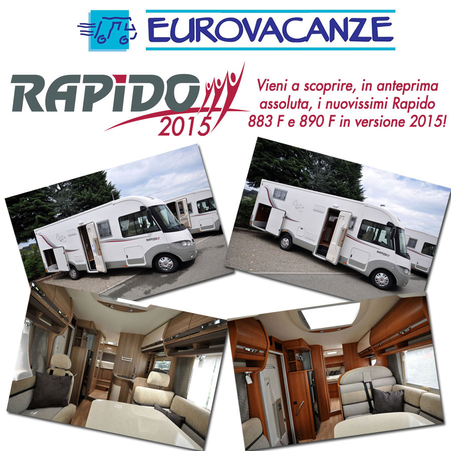 La storica azienda francese, leader nella realizzazione di profilati e integrali con carrozzeria in vetroresina, presenta una nuova collezione ricca di contenuti tecnici e stilistici con tante soluzioni tutte da scoprire: potete iniziare a farlo già ora, presso EuroVacanze, dove sono già disponibili i nuovissimi Rapido 883 F e Rapido 890 F in versione 2015!