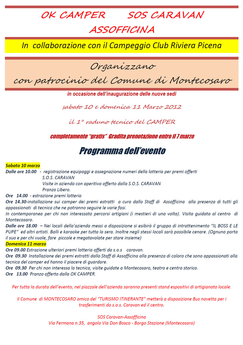 SOS Caravan inaugura la nuova sede e organizza il Primo Raduno Tecnico del Camper: