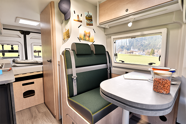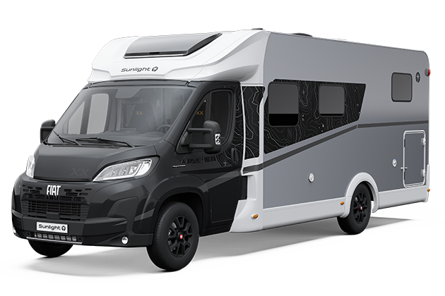 E’ sviluppato su base Fiat Ducato, con il colore nero della cabina che prosegue in parte nelle grafiche sulle fiancate. L'antenna LTE, in combinazione con la SmartTV di serie, rende il
