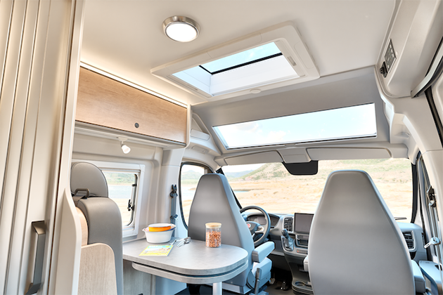 Cliff X, caratterizzato dallo Skyview sopra la cabina e la soluzione open space senza la cappelliera. Risultato: più spazio e più luminosità nella parte anteriore dell’abitacolo.