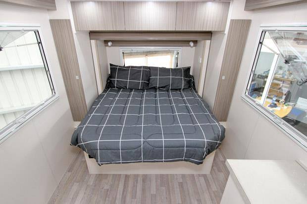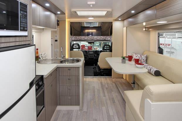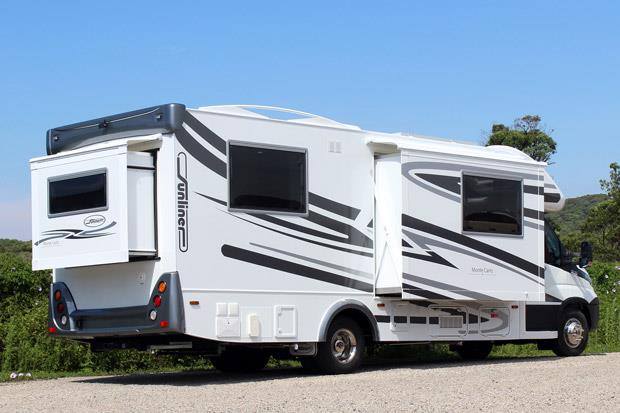 Come meccanica di base utilizza l'Iveco Daily da 70 quintali, per la scocca ecco due slide-out (uno posteriore, l'altro laterale) e per ciò che concerne la pianta interna prova a creare un piccolo appartamento su ruote, con una vera e propria camera da letto in coda, una toilette completa di doccia domestica, un grande salotto anteriore e un altrettanto grande blocco cucina. A livello di accessori ecco poi lavatrice, mobile cucina esterno, generatore, condizionatore e tutto ciò che può servire. Il tutto, in versione profilata. E' prodotto in Australia, ed è il Sunliner RV MonteCarlo.