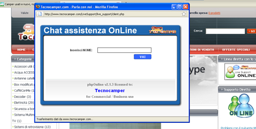 E' sufficiente inserire il proprio nome e immediatamente si viene messi in contatto con lo staff Tecnocamper: