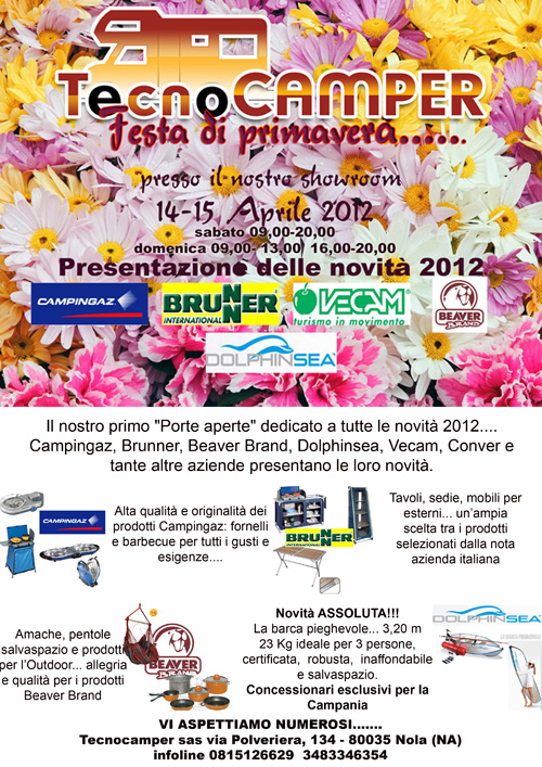 Tecnocamper, specialista campano degli accessori, il 14 e 15 Aprile organizza, la Festa di Primavera, il primo "Porte Aperte" per la dinamica azienda di Nola.