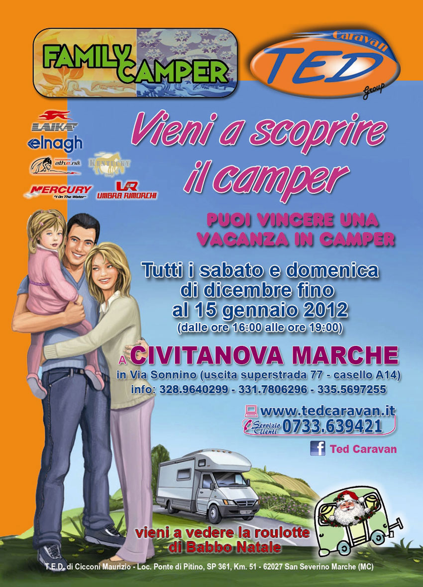 Inoltre per i clienti CAMPERISTI che accompagneranno una famiglia NON CAMPERISTA avranno per loro un buono acquisto da spendere presso TED Caravan, e per la famiglia che hanno accompagnato un buono noleggio del valore di € 50,00 o un buono sconto sull’acquisto di un camper (nuovo o usato) del valore di € 500,00.