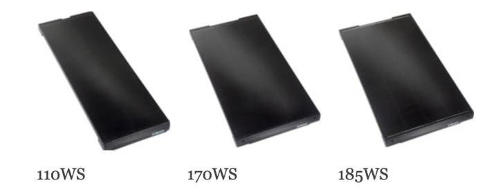 - TBS 110WS. Ha un’efficienza del modulo del 20,5%, una dimensione di 1.160x450x30 mm e un peso (senza piedi) di 6,3 kg.