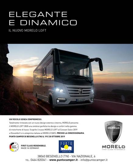Per venire incontro alle richieste e alle attese del pubblico italiano, nei giorni 19 e 20 ottobre sono stati organizzati i "Morelo Days", presso la sede di Punto Camper a Besenello (TN): un'occasione unica per scoprire questa produzione di veicoli dalle dimensioni importanti e con dotazioni e caratteristiche costruttive di altissimo livello.