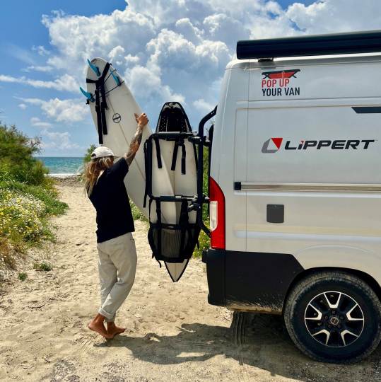 Con la gamma R-Bike, R-Skirun e R-Wave, Lippert conferma ancora una volta il suo impegno nell'innovazione del settore caravanning, offrendo ai viaggiatori la libertà di portare con sé le proprie passioni, dalle biciclette agli snowboard, fino a surf e kayak, in un'unica, pratica soluzione modulare.