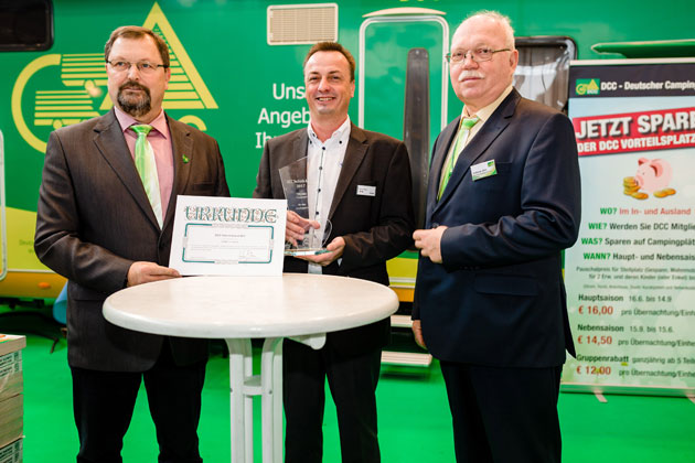 Frank Titze con il presidente del DCC Andreas Jörn (a destra) e il vicepresidente del DCC Dieter Albert (a sinistra) alla consegna del premio.
