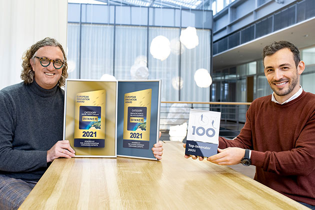 Didascalia della foto: I due CEO di Truma Group, Robert Strauß e Alexander Wottrich, sono molto soddisfatti dei premi.