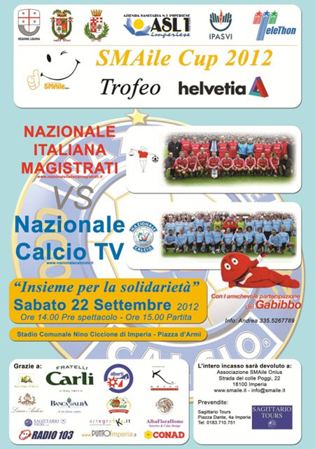 Inoltre, alle ore 9 di sabato 22 settembre si terrà un convegno dal titolo "SMA, comunicazione, conoscenza e avanzamenti terapeutici", mentre con inizio alla ore 15, presso lo stadio comunale Nino Ciccione di Imperia si terrà la SMAile Cup 2012 "Insieme per la solidarietà", partita di calcio di beneficienza tra la Nazionale Calcio TV e la Nazionale Italiana Magistrati.