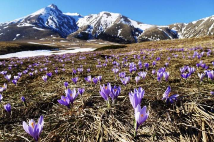 Tra le più affascinanti fioriture in Italia c’è sicuramente, anche se poco conosciuta, quella dei crochi a Campo Imperatore, in provincia dell’Aquila in Abruzzo. Questo fiore selvatico, parente dello zafferano, nasce spontaneamente su diversi versanti montani sia sull’Appennino che sulle Alpi. È però su questo vasto altopiano, nel Parco del Gran Sasso, che trova il suo habitat ideale. Appena si scioglie la neve, infatti, migliaia di boccioli spuntano e vanno a formare un nuovo manto dalle sfumature viola e bianco. Il Parcheggio Camper Campo Imperatore, Loc. Assergi, si trova vicino al Parco del Gran Sasso e permette di fare numerose passeggiate per scoprire la bellezza di questo parco immerso nella montagna.