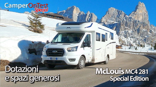 Immerso in scenografici paesaggi innevati ecco il nuovo McLouis Mc4 281 Special Edition, una delle ultime proposte realizzate su base Ford Transit che si collocano alla base dell'offerta dell'azienda toscana. Si tratta di un semintegrale di generose dimensioni provvisto di letto basculante anteriore, che sviluppa un classico layout con matrimoniale centrale nautico abbinato a un living in conformazione face-to-face. Ma lo fa offrendo spazi interni davvero ampi, vivibili e ben organizzati, portando inoltre in dote un'equipaggiamento offerto di serie tutt'altro che basico per la fascia di mercato in cui si inserisce. Ecco il nostro Special sulla neve: