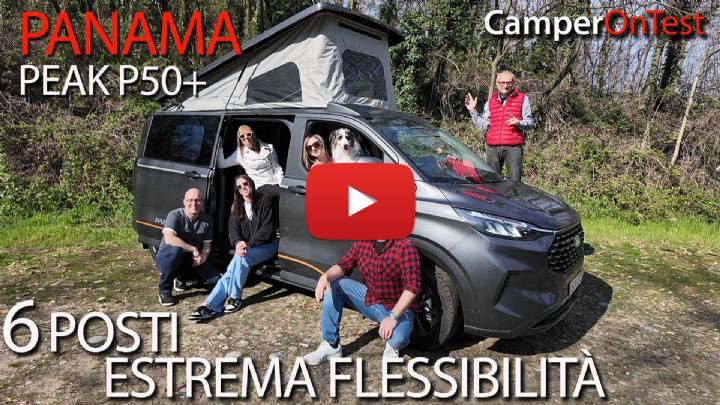 Panama Peak P50+ è un mini van polivalente, si presta a innumerevoli utilizzi, portando ai massimi livelli il connubio tra l’automobile e il camper. E’ perfetto per trasportare diverse persone, ma è un compagno fedele nelle attività sportive più disparate. Offre la massima versatilità nel minimo ingombro. Utilizzando la versione lunga del Ford Tourneo Custom riesce a garantire una flessibilità d’uso notevole perché ha spazi interni configurabili a piacere. Punto di forza sono i sei sedili singoli, di cui quattro asportabili. Le sei sedute singole sono confortevoli, i sedili sono montati su guide a pavimento, quindi sono scorrevoli. Quando e come utilizzare un veicolo a sei posti è questione di esigenze e... di fantasia… Vediamo dunque nel dettaglio come è fatto il nuovo Panama Peak P50+.