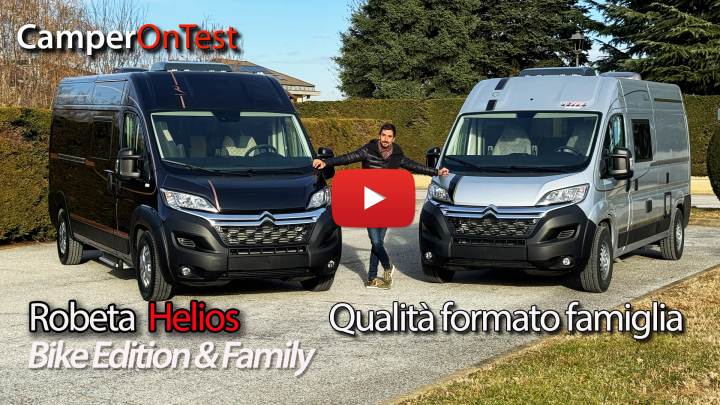 Sotto i riflettori il Robeta Helios nelle particolari varianti denominate Family e Bike Edition, due versioni che trasformano un classico van di taglia media in un mezzo ideale per una famiglia di tre o quattro persone, oppure per una coppia di sportivi che non vuole precludersi la possibilità di ospitare ogni tanto qualcuno a bordo. Il tutto unito a virtù come la cura dei minimi dettagli, lo studio di soluzioni innovative e spesso originali, nonché la massima possibilità di personalizzazione degli allestimenti.