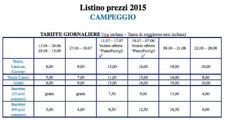 La quota comprende: tessera club; n.1 postazione per tenda, caravan, camper o canadese.
