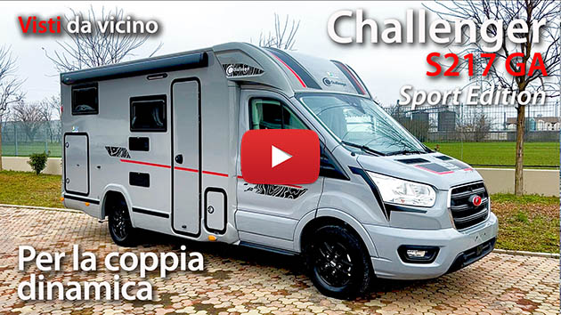 Un camper dal carattere forte, deciso, con un'immagine accattivante e una meccanica appagante: il Challenger S217 GA Sport Edition non passa inosservato e si fa apprezzare anche per il buon rapporto prezzo-dotazione. Con questo veicolo la casa francese ribadisce il suo impegno nel segmento dei semintegrali compatti, a larghezza ridotta, e la serie speciale Sport Edition dona quella grinta che manca al modello standard. L'abitacolo è adatto a due persone, ma in due si sta comodi in rapporto alle dimensioni, con tanto di letti gemelli posti sopra il garage.