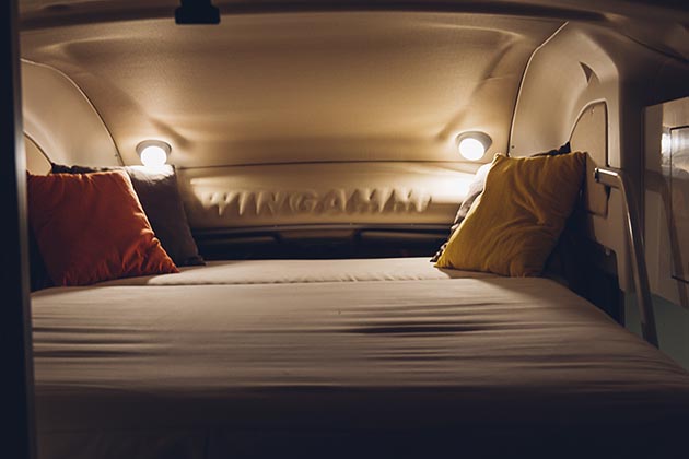 Brownie è dotato di una carrozzeria monoscocca e meccanica Fiat Ducato con telaio ribassato Al-Ko. L’allestimento è caratterizzato da due zone notte completamente separate: il letto basculante anteriore ed i letti a castello in coda che, con un semplice gesto, si trasformano in un grande vano garage per il trasporto di bici, scooter e attrezzatura da campeggio.